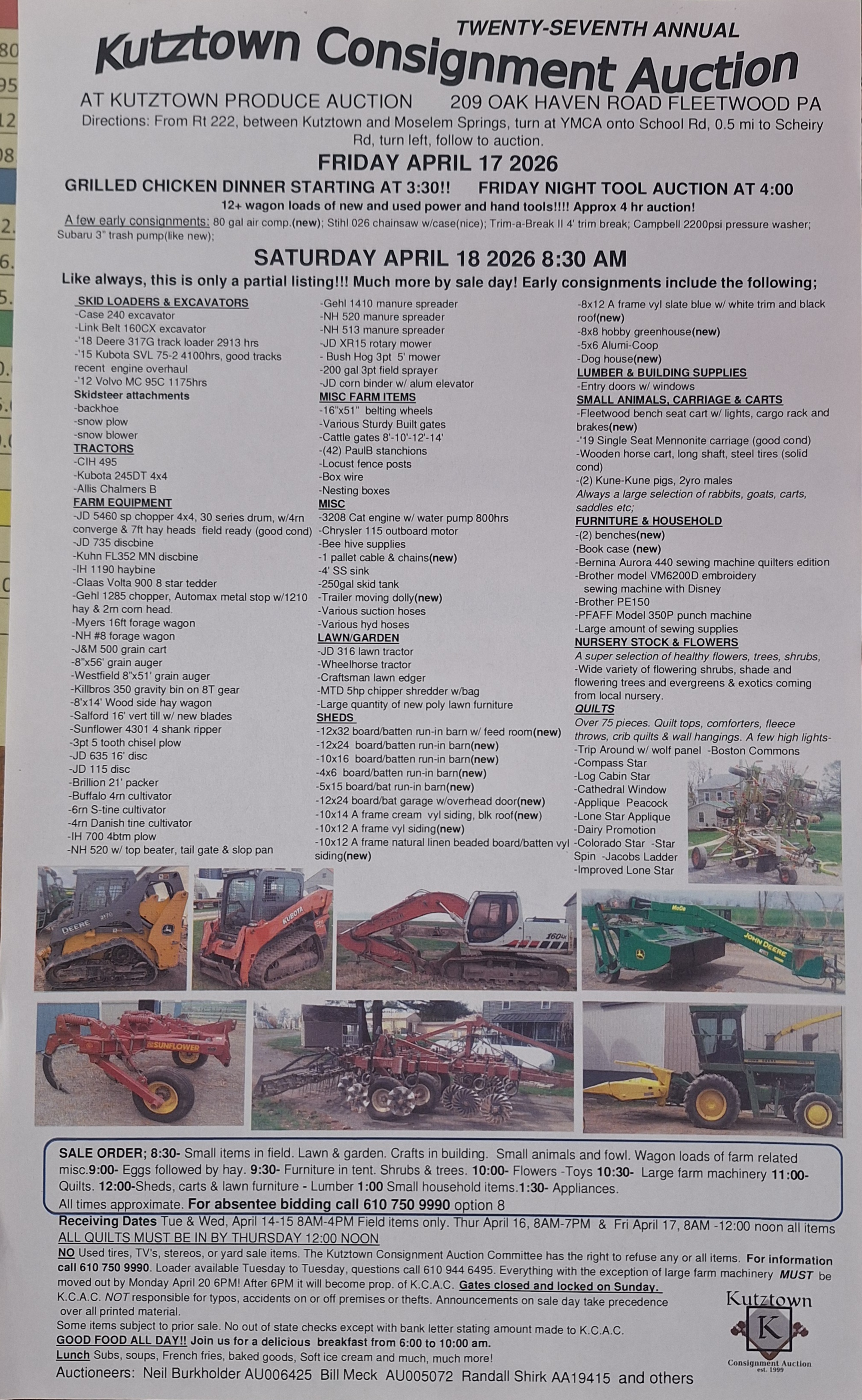 NO TO: Used Tires, TVs, Stereos, or Yard Sale Items. THE KUTZTOWN CONSIGNMENT AUCTION COMMITTEE HAS THE RIGHT TO REFUSE ANY OR ALL ITEMS.